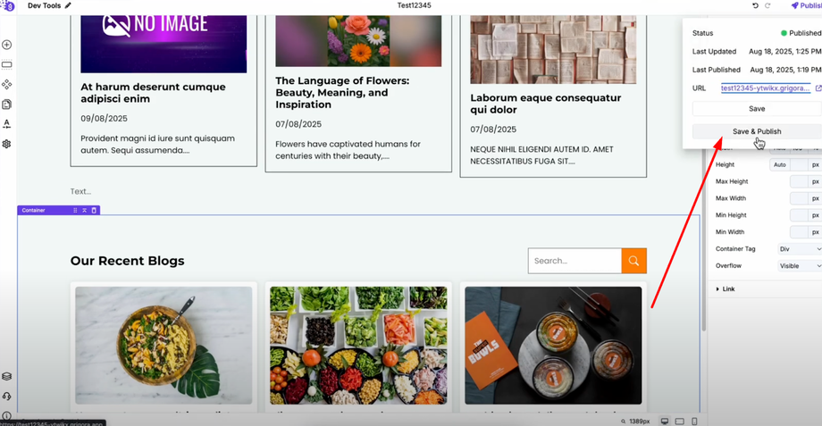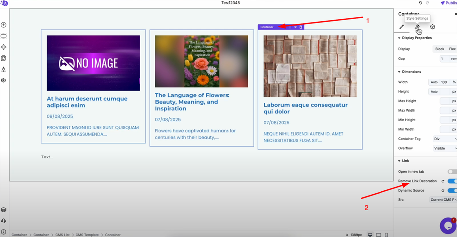 After configuring all elements, save and publish your website. Your CMS loop is now ready and when a user clicks on any card, it will dynamically open that post, creating a seamless browsing experience for your visitors.