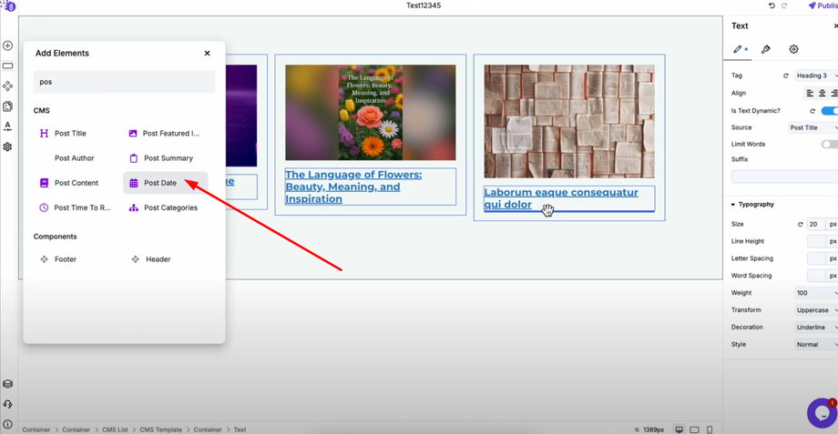 Add the post date by dragging it from "Add Elements" to show when each post was published.