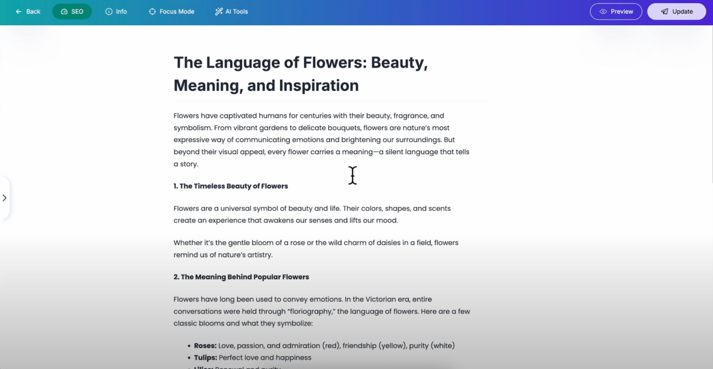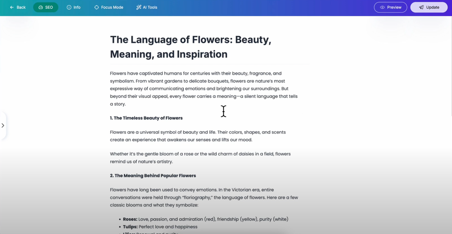 Grigora's post editor automatically saves your post every minute while you're working. This happens without any action from you — the system continuously backs up your progress in the background. You don't need to remember to press save constantly as the auto-save feature runs automatically, ensuring your work is always protected.