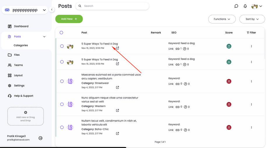 Locate the blog post you wish to modify and click on it to open the editing interface.