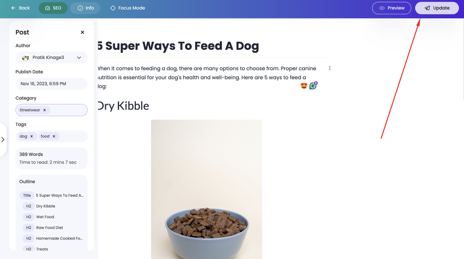 8. Update the Post: