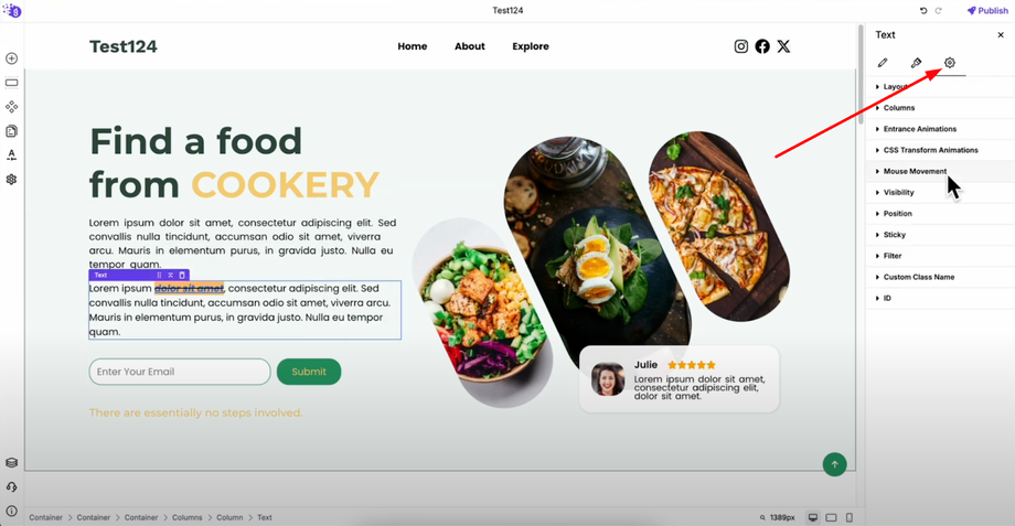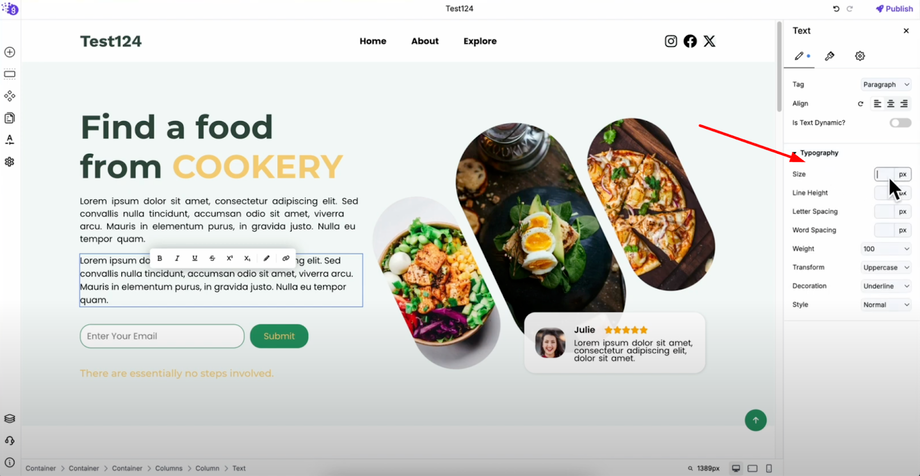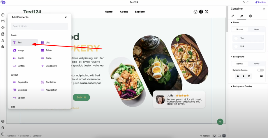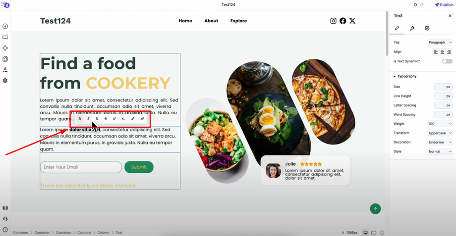 Click and drag the text block to wherever you want to place it in your editor. Once dropped, you can start typing your content directly into the text block, making content creation immediate and intuitive.