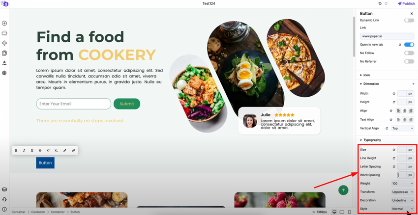 Once added, you can type your button text directly by clicking on the button and entering your desired call-to-action text.