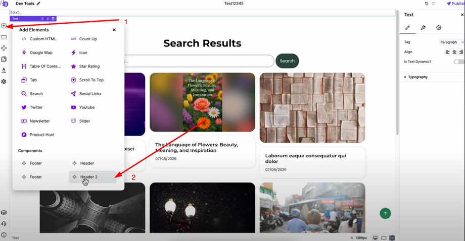 Before adding different headers to pages, design your new header layout in the editor. Create the structure, styling, and content you want for your specific page. This could be a simplified header for landing pages, a specialized header for blog posts, or a unique header for product pages.