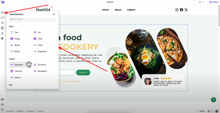 This way you can drag and drop any elements you want into your editor and build your website exactly how you envision it. The system provides: