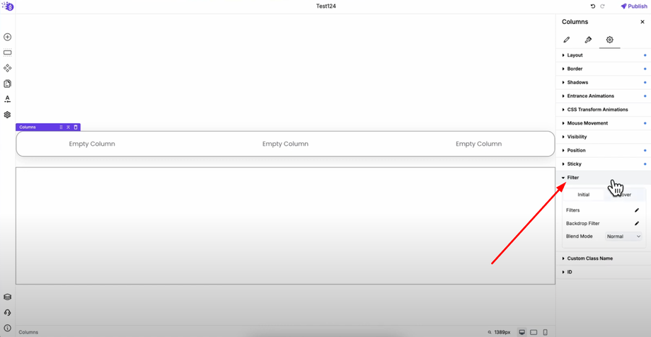Filters: Apply visual effects to enhance column appearance that can be applied on hover with transition timing for smooth interactive design.