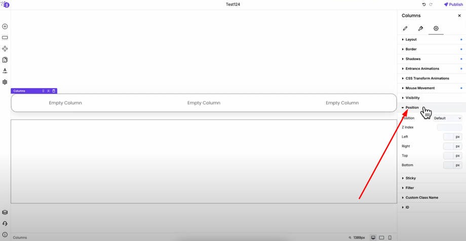 Position: Control positioning with relative, absolute, sticky, fixed, and static options. Set Z-index and left, right, top, bottom values for precise element placement.