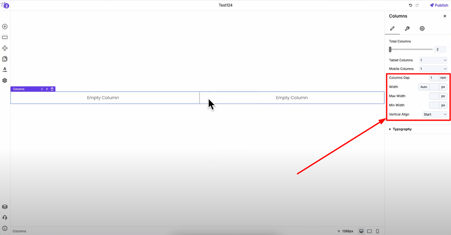 Vertical Align: Align your columns to start, center, or end positions vertically for precise content positioning within your layout.