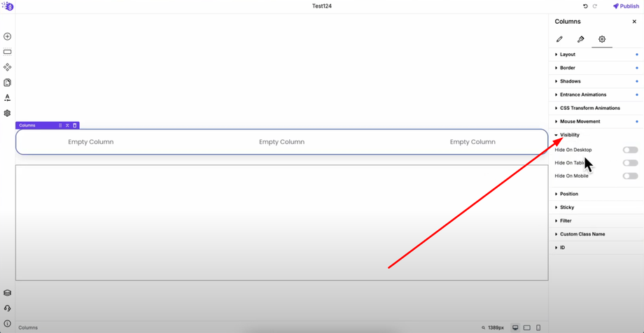 Visibility: Show or hide columns on specific devices (desktop, tablet, or mobile) for tailored responsive experiences.