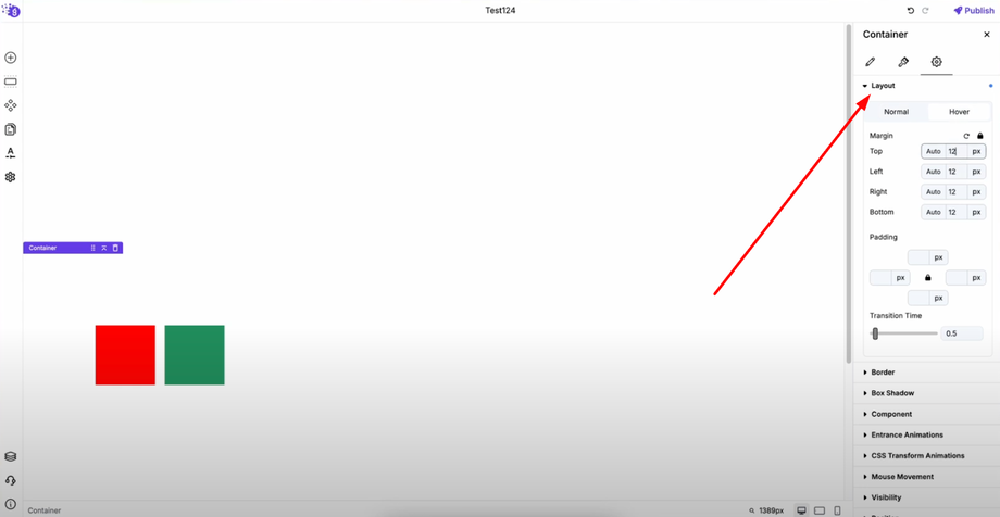 Margin and Padding: Apply individually or uniformly with hover effects and transition timing. Both can be linked or unlinked for precise spacing control throughout your design.