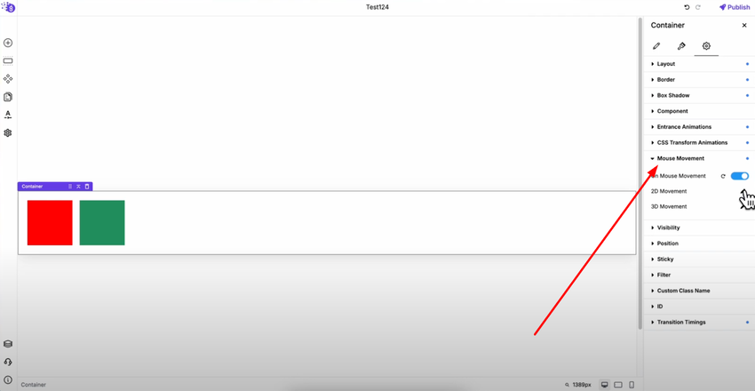 Mouse Movement: Enable containers to respond to mouse movement with opposite or same direction displacement in 2D or 3D space for modern interactive experiences