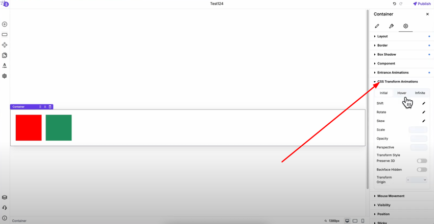 CSS Transform Animations: Advanced transform controls for initial, hover, and infinite animations including shift, rotate, skew, and scale effects with custom timing and positioning
