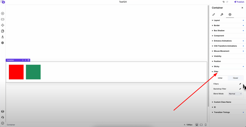 Filters: Apply visual filters and backdrop filters with blend mode options initially and on hover for sophisticated visual effects