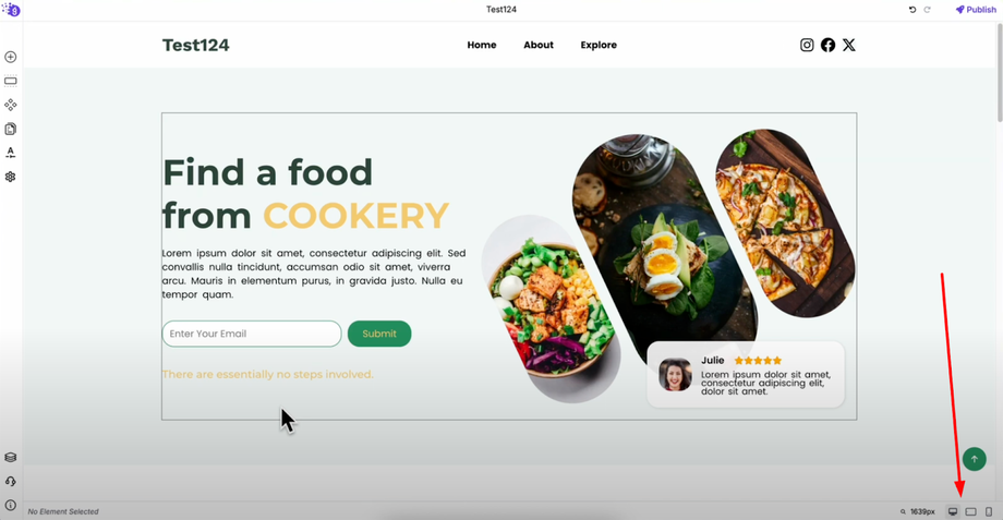 You can preview your responsive design using the device icons at the bottom right of the editor. This powerful preview system allows you to switch between desktop, tablet, and mobile views to see exactly how your website looks on each device before publishing.