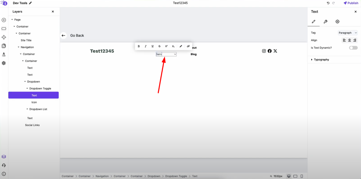 Change the dropdown toggle text to match your navigation needs - this could be "Menu," "Services," "Products," or any category that represents your dropdown content.