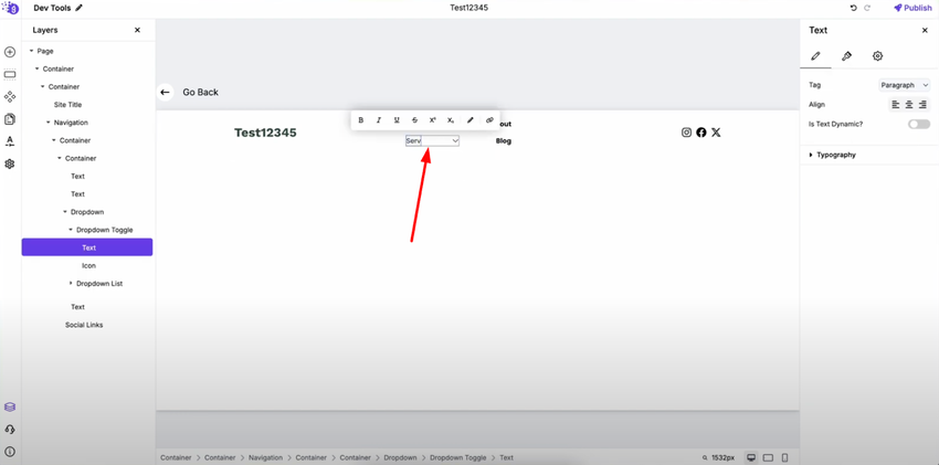 When you preview your website, you'll see the dropdown in the header with the list and your customized layout functioning as designed. Test the dropdown across different devices to ensure consistent behavior and appearance.