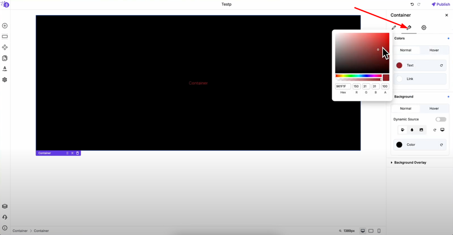 You can set normal and hover colors for your element to create both static and interactive color schemes. Simply click the color option, then choose a custom color from the color picker or select from your saved color palette for brand consistency.