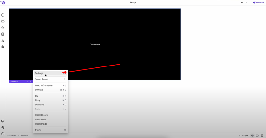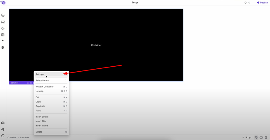 To access element settings, right-click on any element and select "Settings" from the context menu. You can also press Ctrl + E as a shortcut to open the settings panel on the right side of the screen, providing quick access to all customization options.