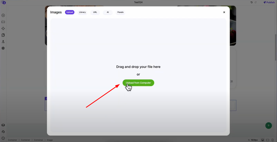 Select "Upload from Computer" to choose an image file from your device. Your image will now be added in Grigora and ready for customization.