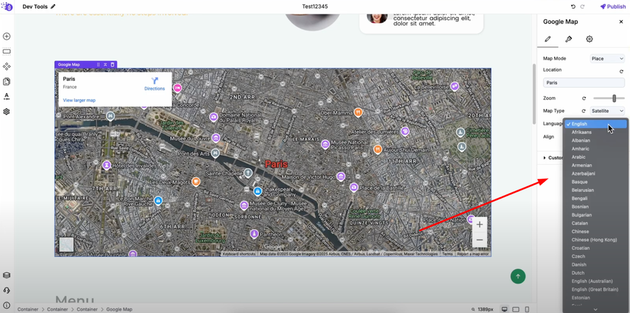 You can change the language of the map interface to match your website's language or your audience's preferences, ensuring accessibility for international visitors.
