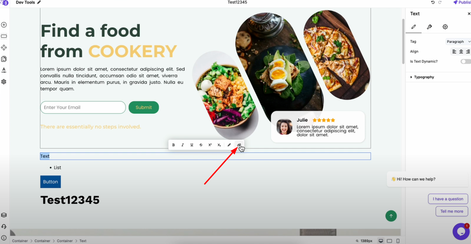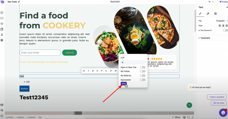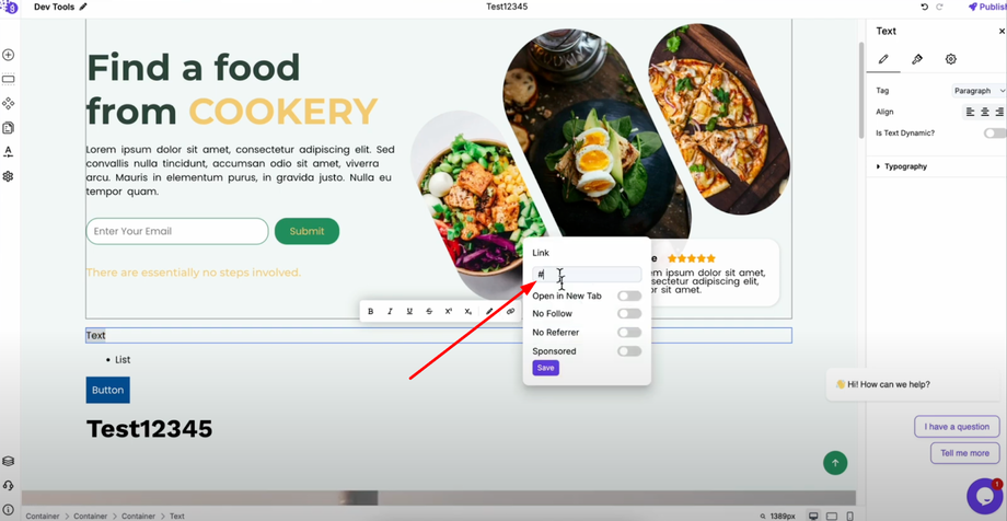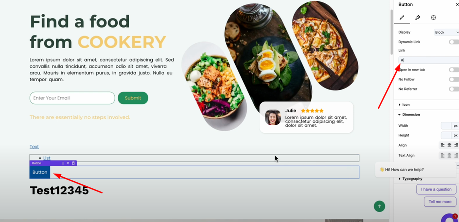 Click on your button element and navigate to its settings panel. You'll find a dedicated link option where you can directly add your URL. The button will automatically redirect users when clicked.