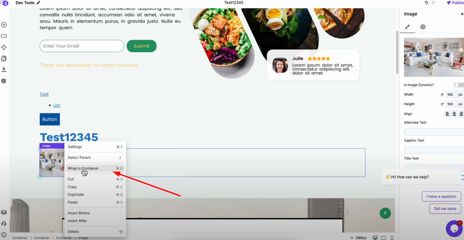 Wrap your element in a container - Select your image (or any block) and wrap it inside a container