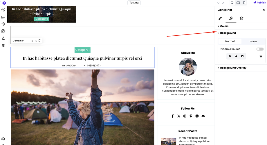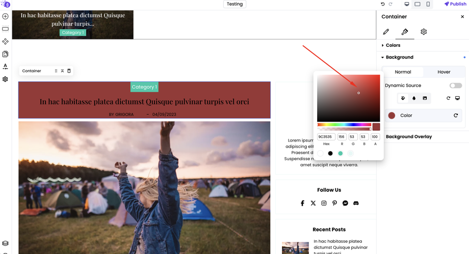 Grigora provides a flexible way to customize the background colors of your website elements. Here's a step-by-step guide on how to change background colors: