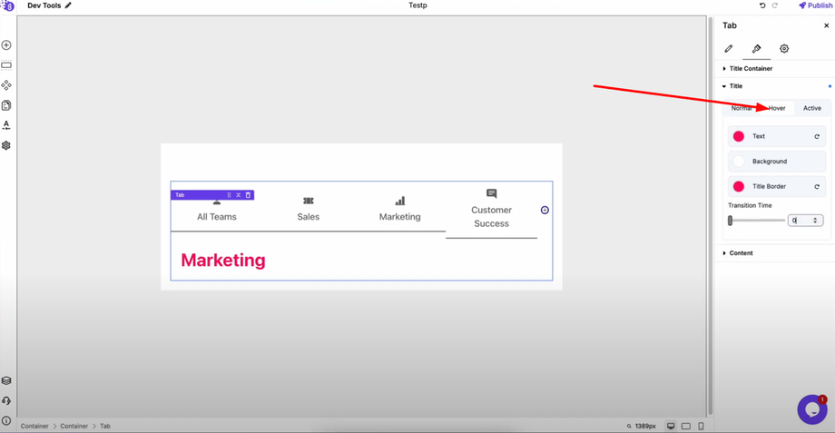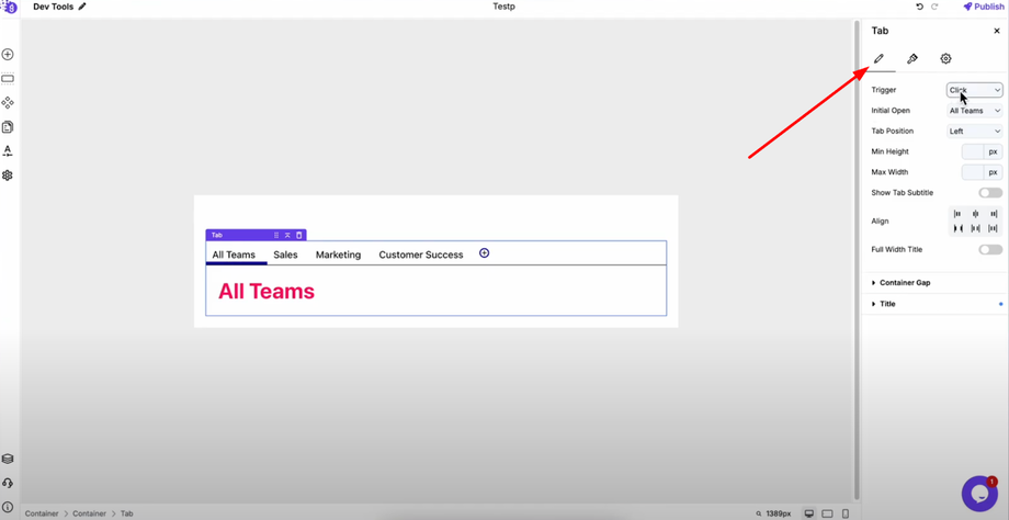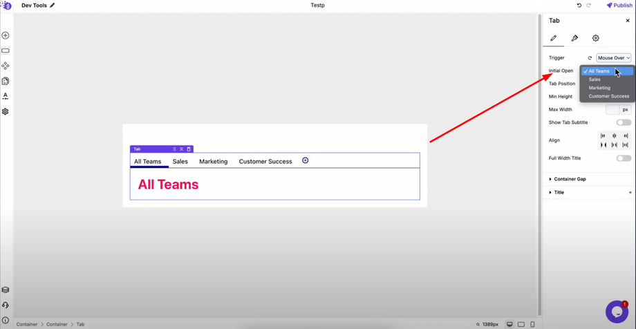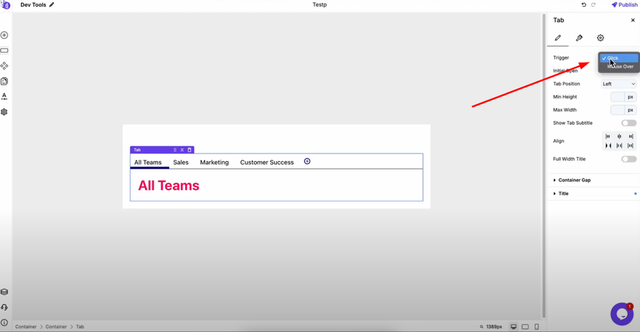Trigger: Change trigger to "Mouse Over" so tabs switch on hover for more responsive user interaction
