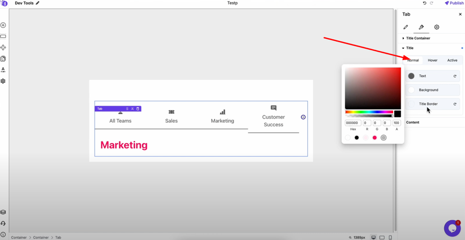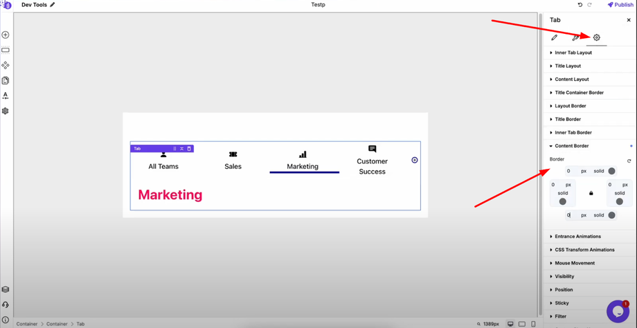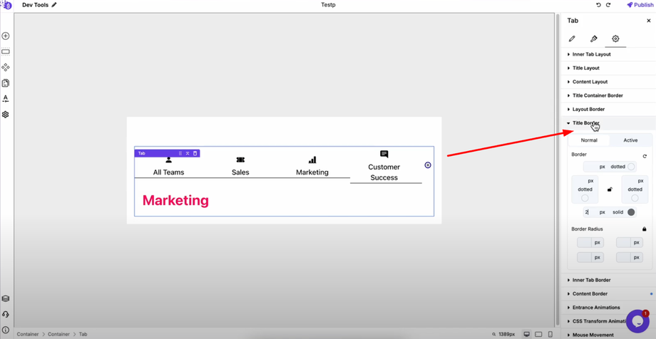 Title Border: Open title border settings and set bottom border to create clear separation between tabs and content