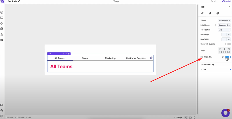 Layout: Enable "Full Width Titles" so tab titles span the entire width of the tab element for better visual balance