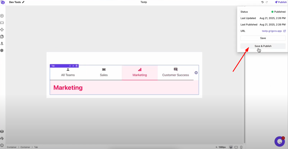 Finally, save and publish your website to make your new tabbed content live. Your tab layout is now ready with: