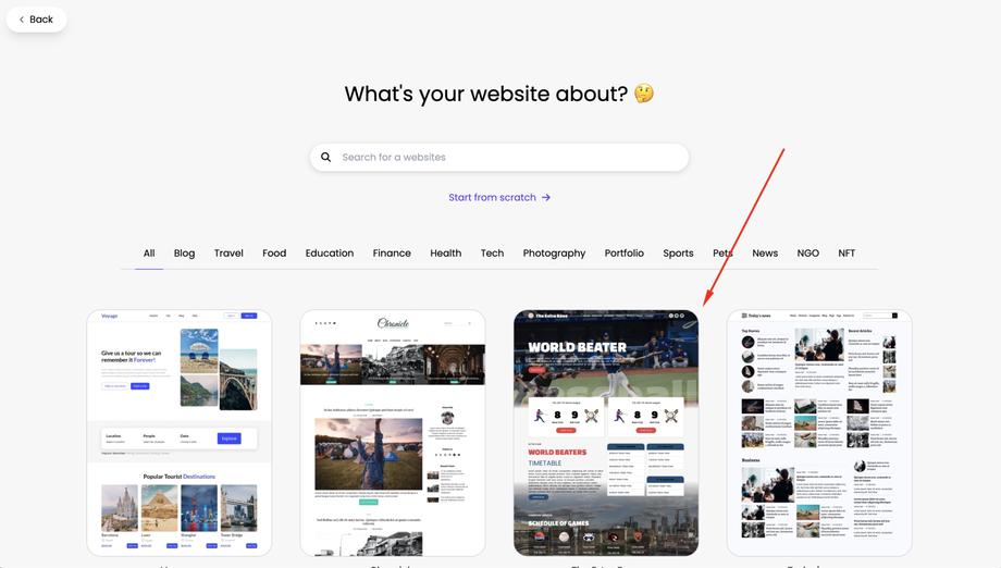 Select a Theme: Browse through the theme library and choose a theme that aligns with your website's style and purpose. Once you find the perfect theme, click on it to proceed.