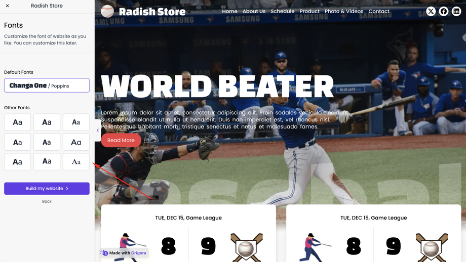 Build My Website: Once you're happy with the customization options, click the "Build My Website" button. Grigora will take a few seconds to process and build your website based on your choices.