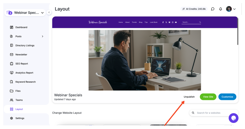 Step 2: Unpublish Your Website