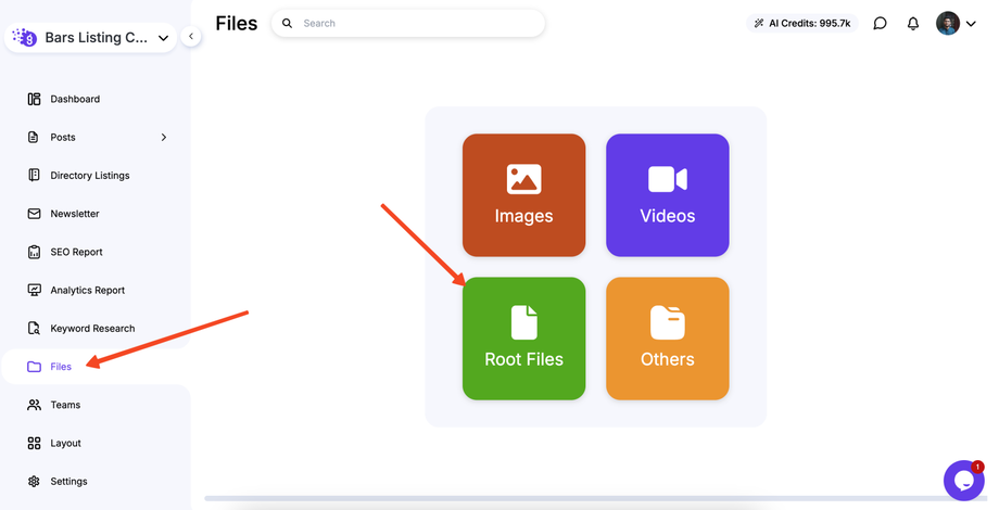 Within the Files section, you'll see a dedicated Root Files box or folder. Click on it.