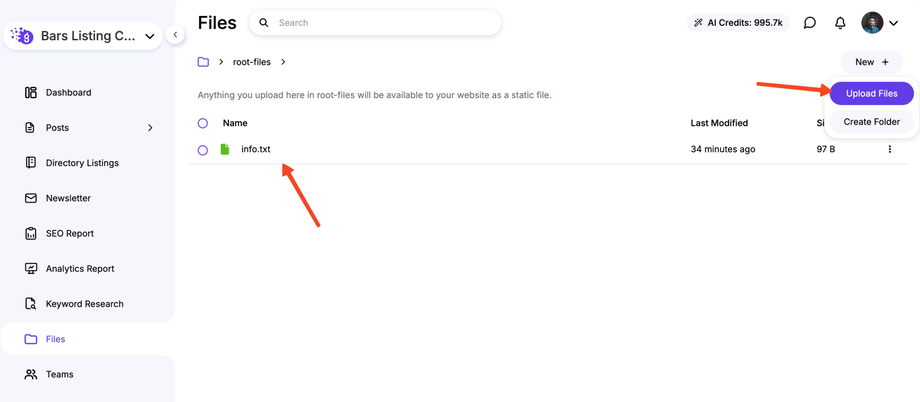 Step 3: Upload to the Root Files Folder