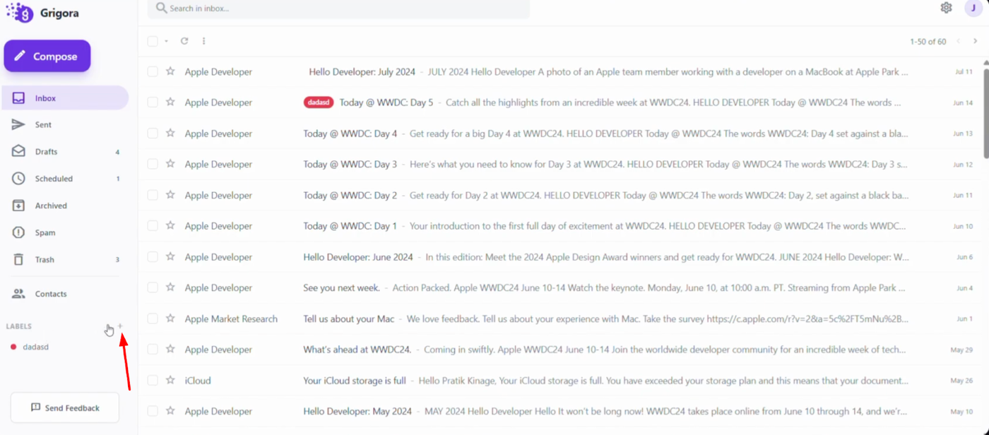 Click the plus symbol (+) next to the labels title to open the creation pop-up.