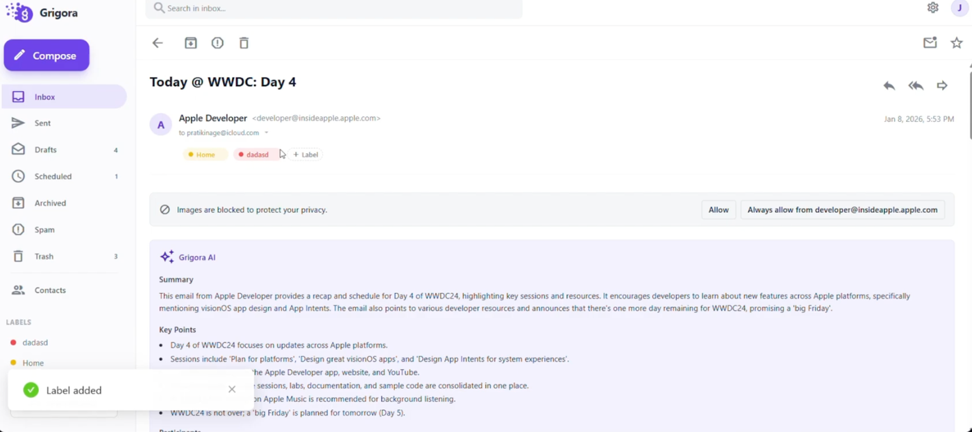 Once applied, labels will appear clearly on the right side next to the sender's name.