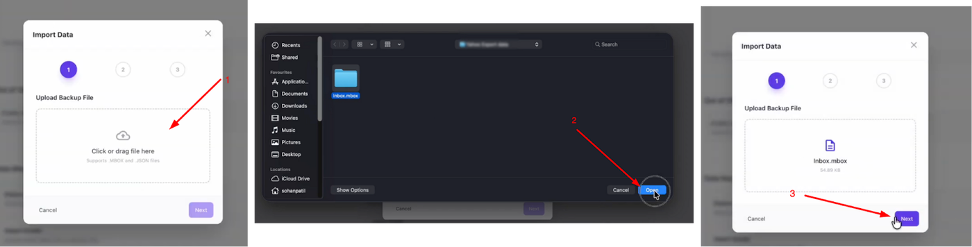 Click "Choose File", select the .mbox file you extracted earlier, and click next.