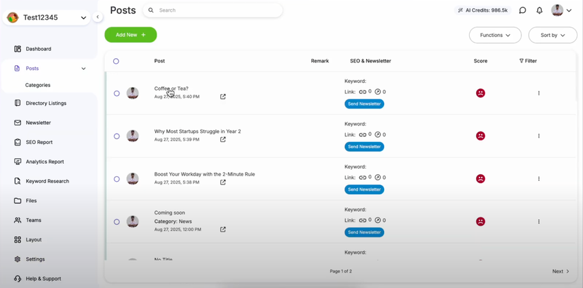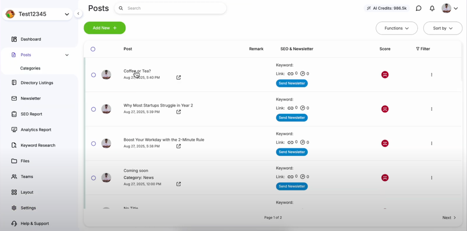 Once the migration is complete, go to the "Posts" section in Grigora to verify that your content has been successfully imported. You'll see all your Ghost posts have been successfully imported with their content intact, including text, formatting, and metadata.