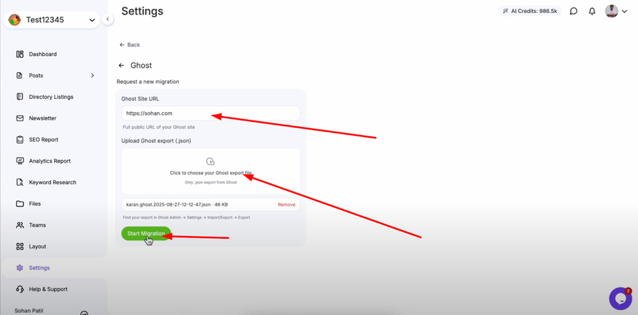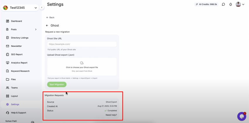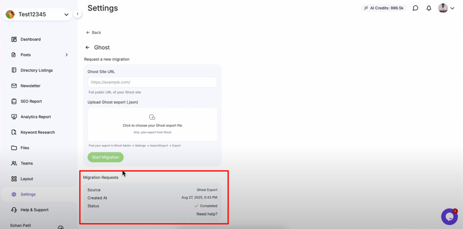 Pro Tip: Before starting the migration, create a backup of your Ghost content and make note of any custom functionality or special formatting you want to preserve. After migration, take time to explore Grigora's additional features like built-in SEO tools, newsletter management, and advanced design options that can enhance your migrated content.