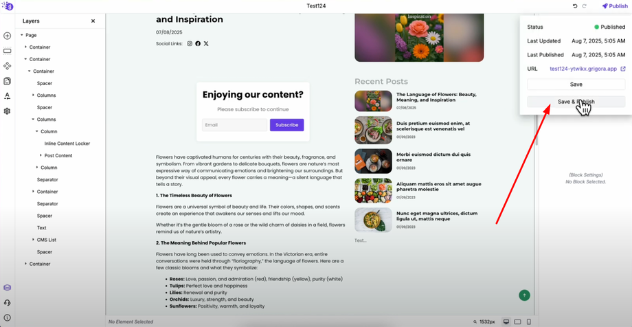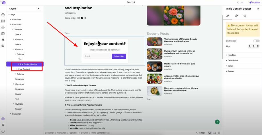 After adding the inline content locker, save and publish your website to make the content lock active across all your blog posts that use the single post template.