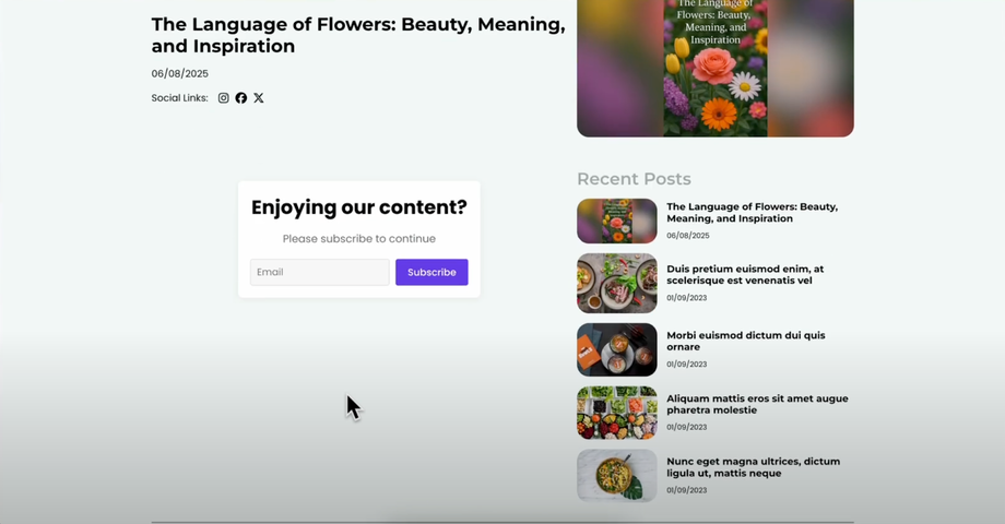 Once they subscribe, the hidden content becomes visible and their email address is automatically added to your email list in Grigora's newsletter system, creating a seamless lead generation process.