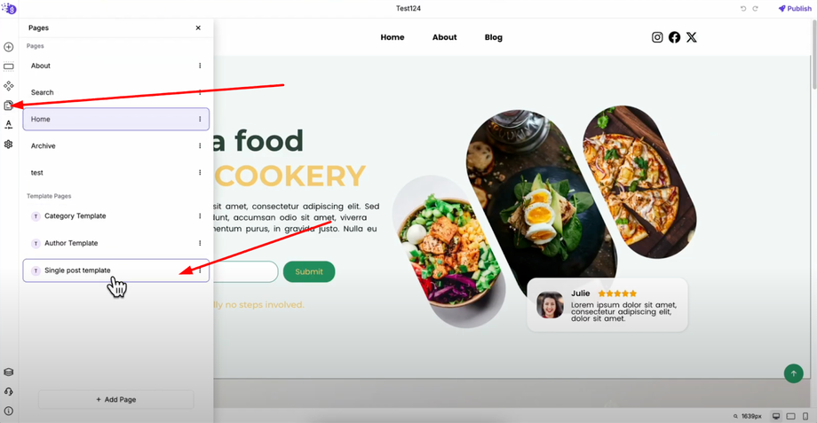 Once inside the site editor, go to "Pages" in the left panel to access your page templates. Select the "Single Post Template" which controls how individual blog posts appear on your website. This template will apply the inline content lock across all your blog posts automatically.