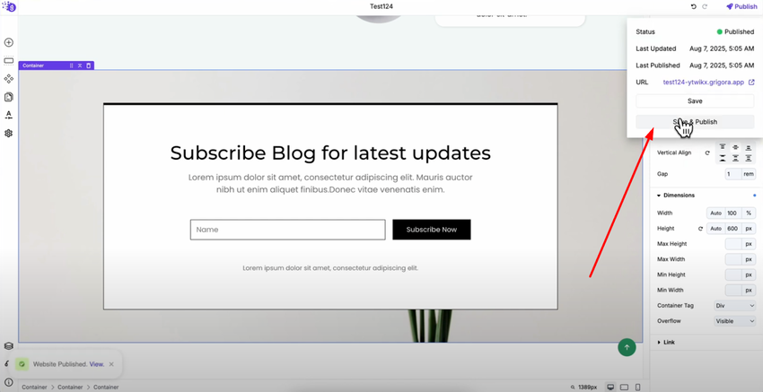 After adding your newsletter signup form, click "Save and Publish" to make your changes live on your website. Your newsletter signup form is now active and ready to start collecting subscribers from your website visitors.