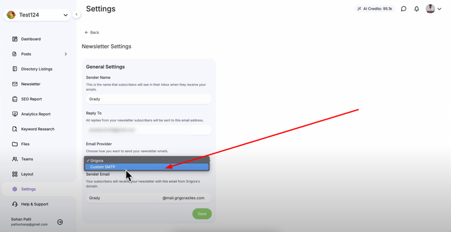 Want better email delivery and control over your sender reputation? This guide shows you how to connect your own SMTP service like SendGrid, Mailgun, Postmark, or your own server to send newsletters from Grigora for improved deliverability and professional email infrastructure.