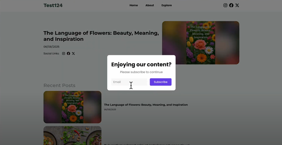 Users cannot access your content without subscribing first — they must provide their email address to proceed. Content becomes immediately visible after successful subscription, creating a seamless user experience for engaged visitors.