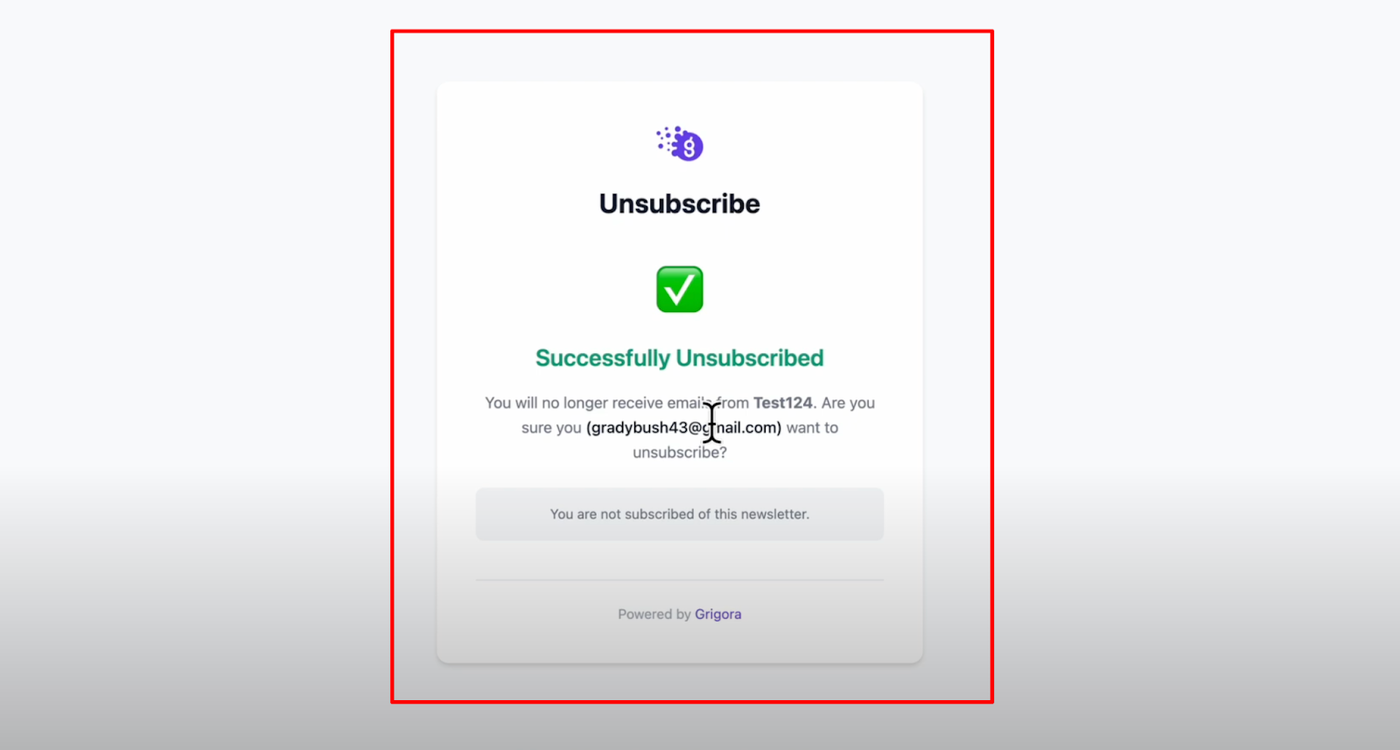 The unsubscribe feature in Grigora ensures that both users and admins have complete control over newsletter subscriptions, making list management easy while respecting user preferences and maintaining compliance with email marketing best practices and legal requirements.