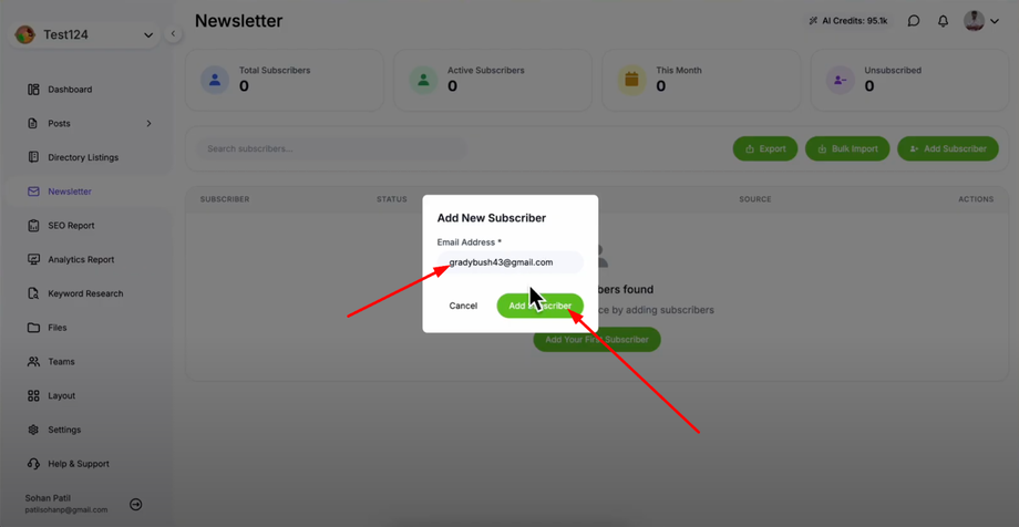 Enter the subscriber's email address in the provided field and click the "Add Subscriber" button to complete the process.