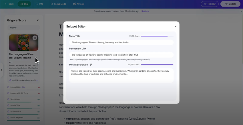 Struggling to write the perfect meta description? With Grigora's Meta Description Generator, you can create compelling, SEO-optimized summaries in just one click. This guide will show you how to auto-generate descriptions using AI and improve your click-through rates on Google.